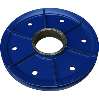 滑輪幅板采用幅板壓制成型,滑輪兩支點受力,與輪轂成三角形,加強滑輪的穩(wěn)定性,此結(jié)構(gòu)新穎,為我司獨有滑輪生產(chǎn)工藝,相同受力情況下,可減少滑輪重量,R槽為車刀成型,因此與輪轂軸的同軸度更高,R槽跳動小,性價比極高。